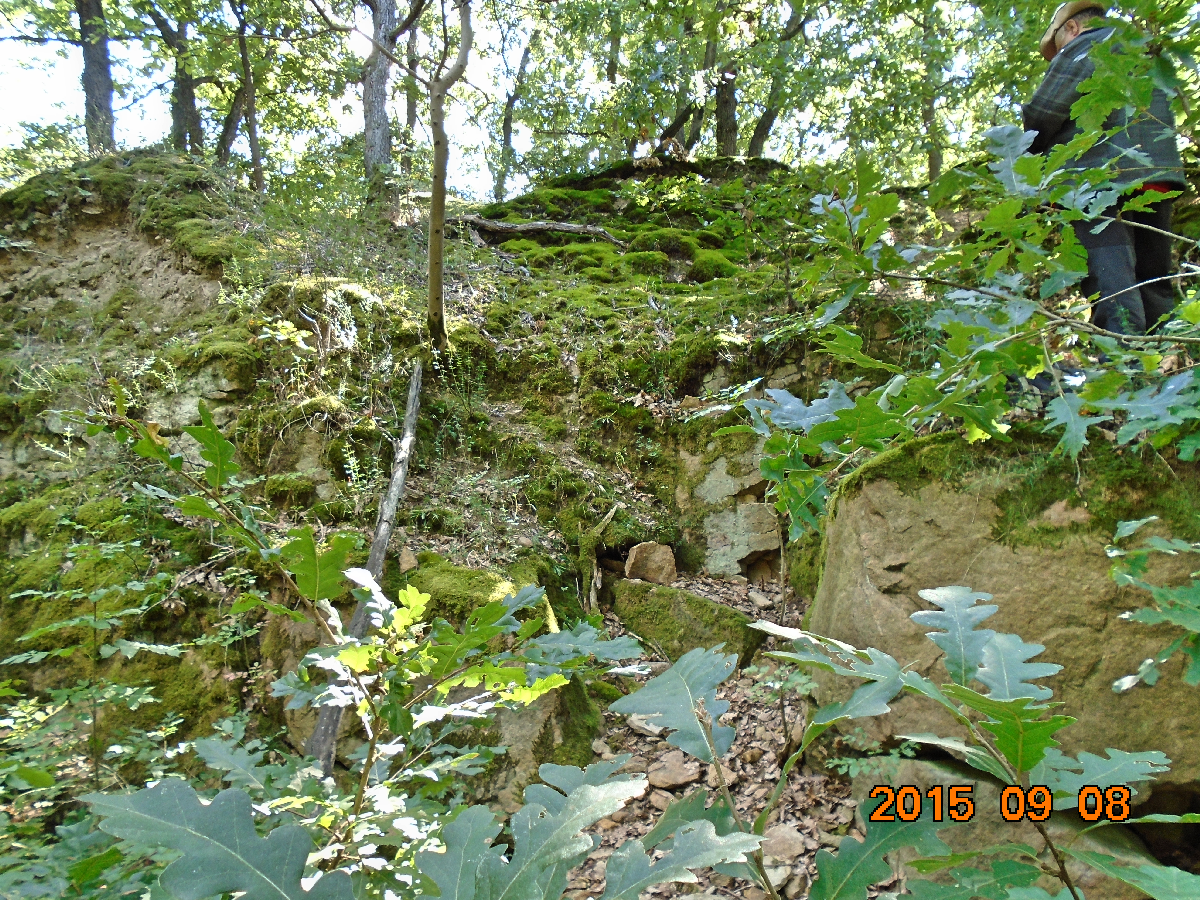 Mi azért igyekszünk a lehető leggondosabban visszarakni, aztán indulunk a következő helyszínünkre, egy felhagyott öreg kőbányába. A turistaútról letérünk egy, a térképen jelölt ösvényre. Eleinte könnyedén haladunk a folyamatosan emelkedő úton, de egyre inkább dzsungelszerű növényzet vesz bennünket körül. Bevesszük magunkat, mert amúgy az ösvény jól kijárt, biztosan követhető. De nyárvége van, meleg és csapadék bőven volt az elmúlt napokban, így a növényzet gazdagon burjánzik.