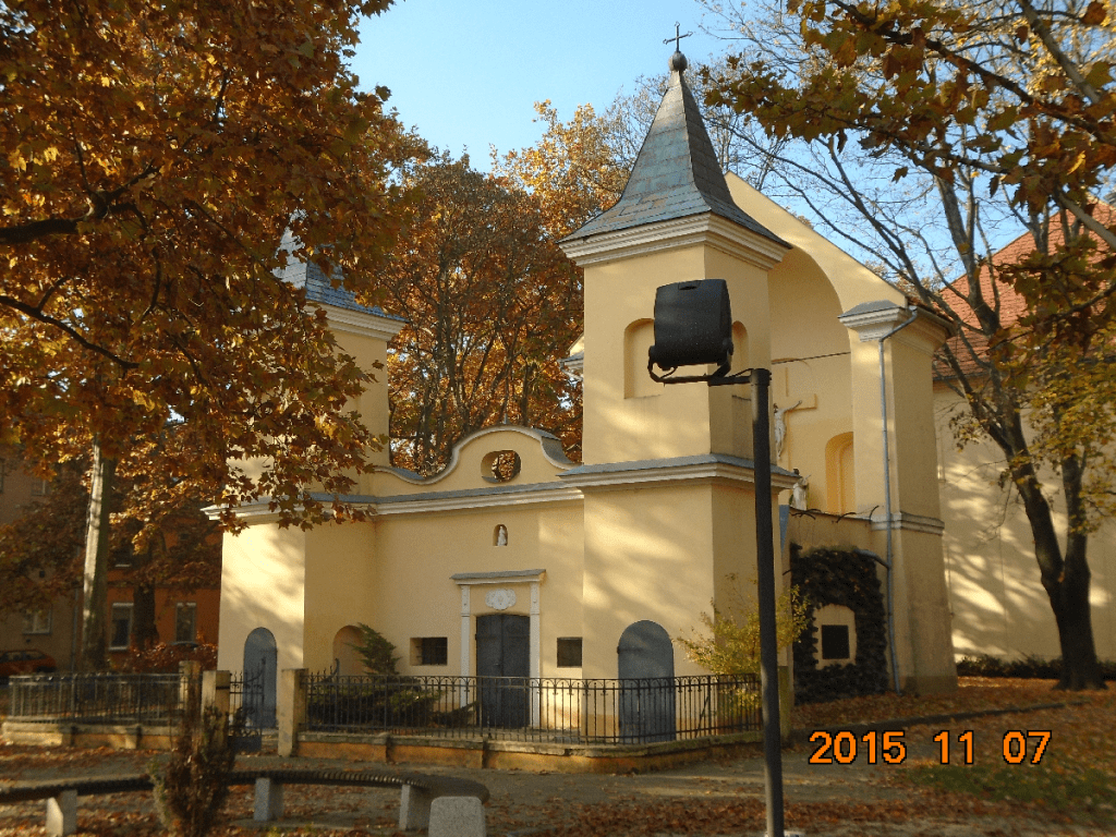 Tehát, egy egykori vasutasváros utcáin lépdelünk a városközpont felé, Celldömölk Kiscell nevű városrészében. Rövidesen érdekes kialakítású kápolnához érünk, mely mérete alapján már egy kisebb templomnak is beillene. A neve Szentsír-kápolna ás Kálvária. Megcsodáljuk az épületet, melynek különös fényjátékot biztosítanak a környező fák óaranyba borult lombozatán áttörő napsugarak. Sokáig nézzük a megkapó látványt, majd tovább indulunk.