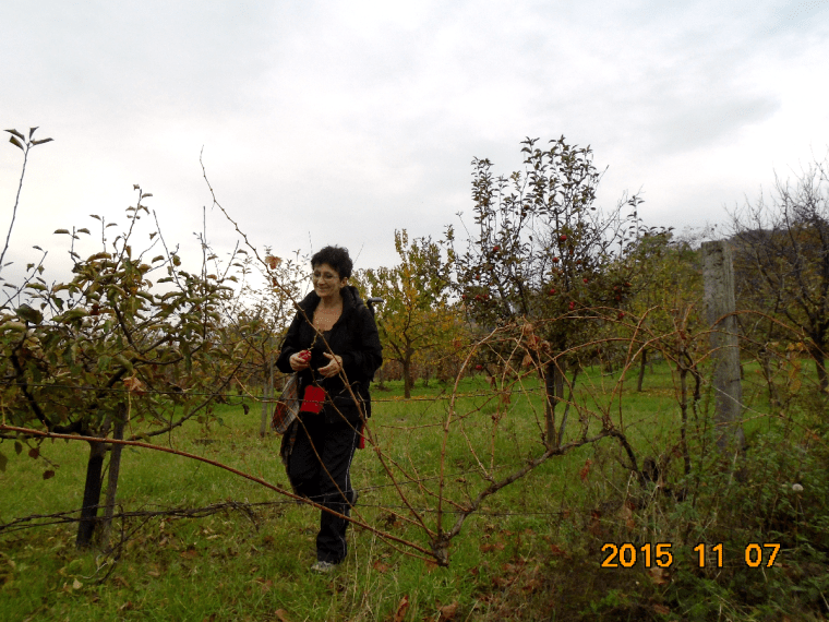 Lent a kráterben összefutunk egy egyetemista korú társasággal, akiknek egy idősebb úr magyaráz angolul. Csekélyke angol tudásommal azt gyanítom, hogy jövendő geológusoknak tart órát a természet tantermében. Nem is zavarjuk őket, gyorsan odébb állunk, miközben nem győzöm kattintgatni a fényképezőgépem. Különleges érzés az egykori vulkán kráterében sétálni! Egy majdnem teljes kört megtéve, a hegy egy másik pontján távozunk. Utunk ismét a szőlő- és gyümölcs ültetvényen át vezet, de ezúttal ereszkedőben.