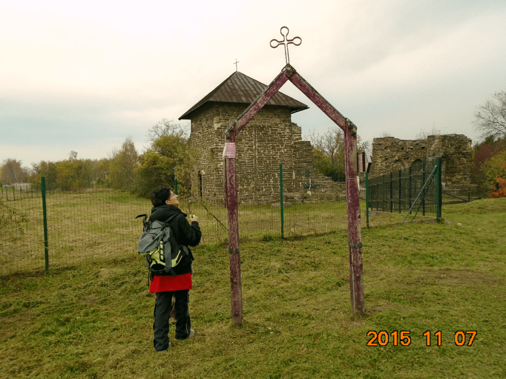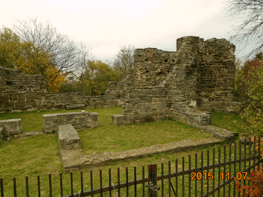 A lenti ködöt szerencsére, némileg megritkította az erőlködő napsütés, így valamivel könnyebben lélegezve megyünk vissza Celldömölkre. Az egyhangú országúti séta után a város Pórdömölk nevű városrészébe érkezünk. Az első megállónk a multi geoláda 1. pontja, az Apátsági templom romja. Közelebbről nem lehet megtekinteni, mert be van kerítve, csak egy fából készült keret jelzi, hol állt egykor a bejárata.