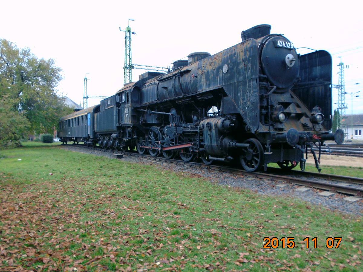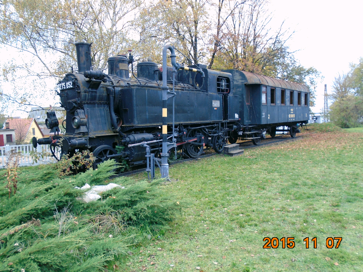 Innen már nem sokat kell mennünk, hogy visszaérjünk a vasútállomásra, ahonnan körutunk indult. Természetesen ez is a multi egyik pontja, ha már vasutas városról beszélünk. A felvételi épület melletti kis zöldterületen van egy szabadtéri kiállítás hajdani vasúti járművekből. Található itt mellékvonali “kávédaráló”, becenevén “Nyalóka”, a hozzá illő favázas személykocsival, de pihen itt egy “BIvaly” is, mely a fővonali közlekedésben a MÁV legismertebb gőzmozdonyai közé tartozott (424-es). Ehhez már egy négytengelyes kocsit csatoltak. Itt áll a mára már elfeledett tűzoltó vonat egy kocsija is, amely szerelvényeknek a gőzösök idején volt jelentőségük. A gőzmozdonyok ugyanis gyakran felgyújtották a talpfákat vagy a pálya menti növényzetet a kibocsátott szikráikkal. Ilyenkor, ha a mozdony víz készletével nem sikerült eloltani a tüzet, indult a tűzoltó vonat, hogy a más módon nehezen megközelíthető helyeken is lehessen tüzet oltani.