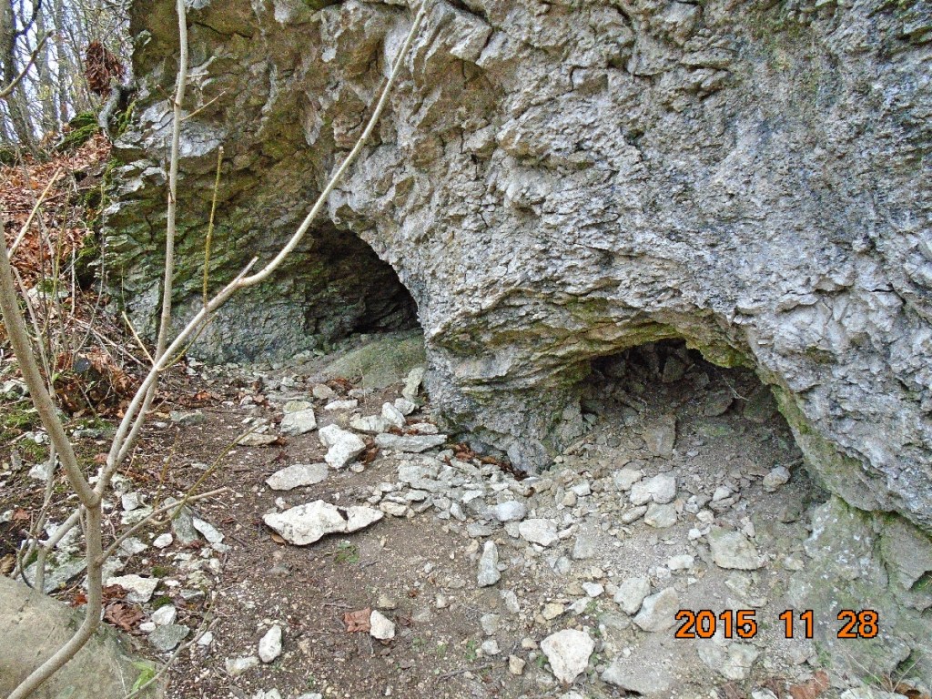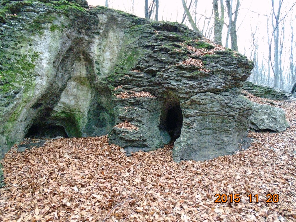 Na, nem Rómáig lehet innen ellátni, csak Pápa városáig. A látványért azonban meg kell dolgozni! Több helyen is komolyabb kaptatón vezet az út, mire felérünk jól kimelegszünk. A sziklatömb aljában érdekes nyílásokat találunk, mintha valaki barlangot akart volna nyitni itt.