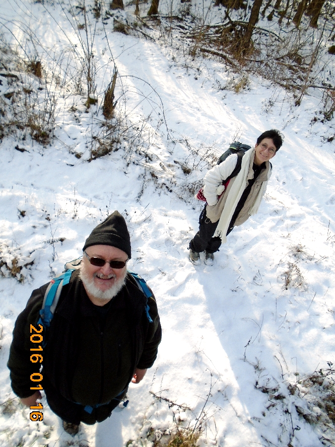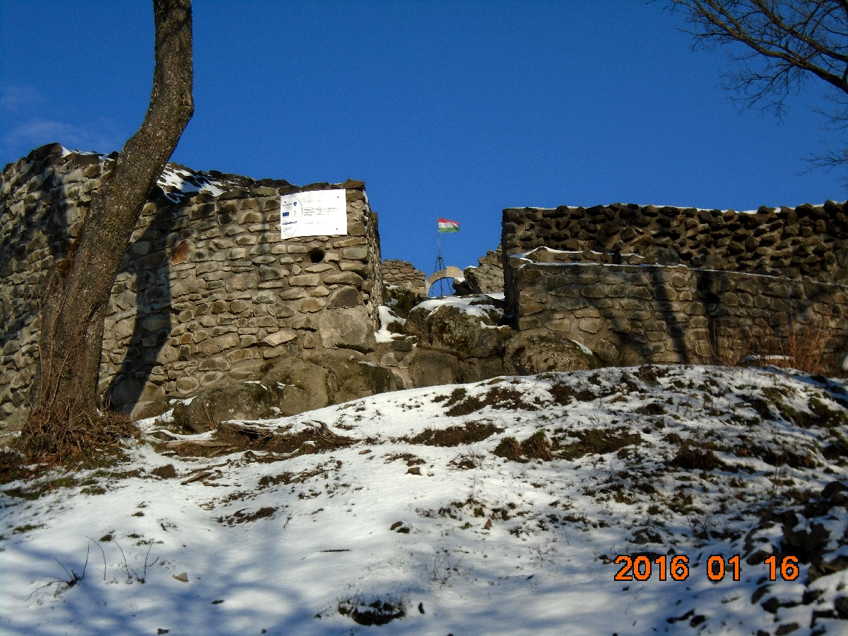Zavartalan a napsütés, de a hőmérő 0 °C alatti értéket mutat, mikor leszállunk a vonatról Drégelyvár vasúti megállóhelyen. Meglepetten tapasztaljuk, hogy itt még maradt a napokban leesett hóból. Az elmúlt két hétben volt az országban mindenféle csapadék, eső, ónos eső, havazás. Nálunk az Alföldön inkább csak az előző kettő, mert havat csak hószállingózás formájában láttunk, ami szinte azonnal elolvadt, amint leesett. Itt viszont 3-4 cm körüli fagyott tetejű hóréteg van. Mindenesetre (mint a néger gyerekek), alaposan rácsodálkozunk a “sok” hóra, mert az utóbbi időben minket Szolnokon, rendszeresen elkerül a hóesés.