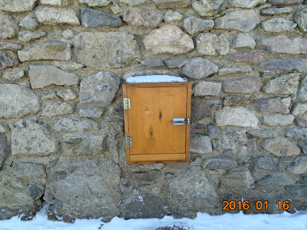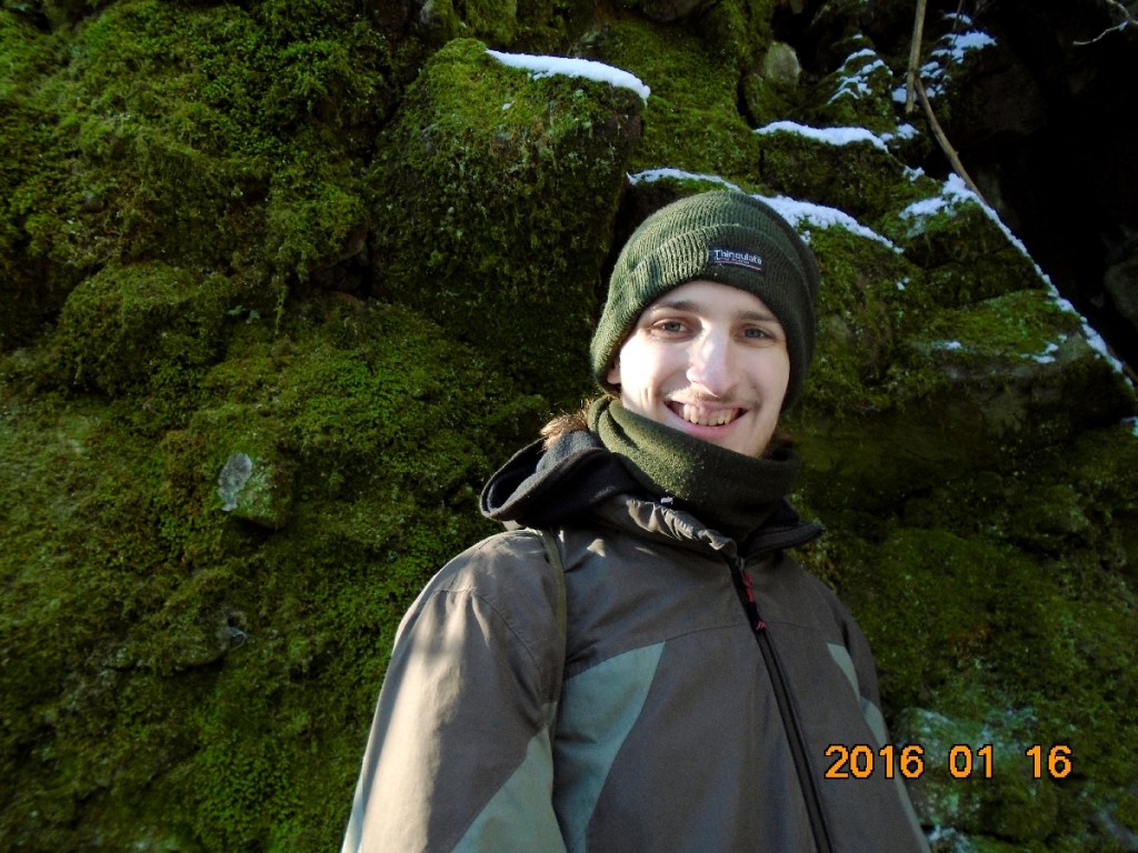 Ez nem túl egyszerű, mert a GPS jel ugrál és egy sziklahasadékban kellene a rejtőzködő láda nyomára akadni. Persze, mindenhol sziklahasadékok vannak, a talaj pedig veszettül ingatag, részben a rárakódott hótól, részben az alatta lévő kőgörgeteg miatt. Össze-vissza járjuk a területet. Ezúttal Zolinak kedvez a szerencse, mert az egyik hasadékban felfedezi a kikukucskáló ládát. Van is vigyorgás! Vé közben lemarad, nem neki való a meredek, görgeteges terep. A logbookba bekerül a bélyegzőnk lenyomata. Online, térerő hiányában, nem tudunk logolni, ezért a jelszót lefényképezzük és a találat regisztrálását későbbre halasztjuk. A láda visszakerül a rejtekébe. Nem igényel erős álcázást, mert idegen ide nem nagyon téved, a ládászoknak pedig segítség, ha némileg látható mert a sziklafal aljában a GPS vétel nagyon bizonytalan. Szerencsére keresgélés közben úgy összejártuk a területet, hogy lábnyomaink sem vezetnek senkit a rejtekhez.