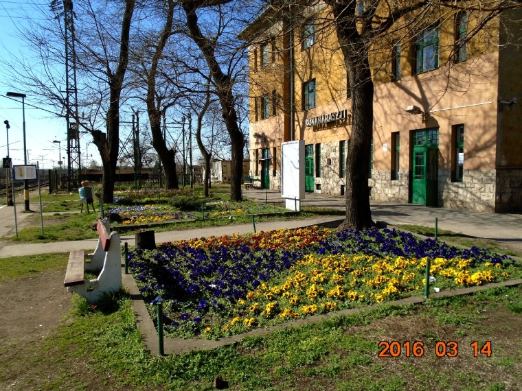 Tegnap megérkezett hozzánk Vé első házasságából származó fia, így Kedvesem otthon süt-főz, míg én úgy döntöttem, hogy kihasználva a szép tavaszi időt, egyedül vágok neki a Dunaharasztiban abbahagyott út folytatásának. Zoli dolgozik, így Ő sem tud velem tartani. Egyébként is, egy nem túl látványos szakasz következik, mely nem igen tartana számot Vé érdeklődésére. A mai cél, hogy a Ferencvárosi pályaudvarig eljussak. Dunaharasztiban a vonatról leszállva, rögtön megfog a felvételi épület előtti kertekben sorakozó virágok látványa.