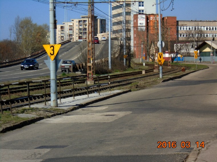 Érdekes, hogy két napja a borús időben nem tűnt fel a látvány, igaz akkor az aluljáróból rögtön a szigetperonra érkeztünk. A vasút melletti utcában indulok el, mely stílszerűen a “vasminiszter”, Baross Gábor nevét viseli. A nap március közepéhez illően már melegen süt, így rövidesen könnyíteni kell az öltözékemen. Reggel, amikor elindultam, a hőmérséklet közel járt a nullához, most pedig már átléphette a 10 fokot is. Ha így megy tovább, délutánra meghaladhatja a 15-öt is! Az Eötvös utcán befordulva, megyek tovább a városközpont felé. Elérve a HÉV vonalát, jobbra fordulok. Ezentúl ez a vaspálya kíséri és vezeti utamat. Gyorsan elérem az M0-t, mely alatt áthaladva, veszélytelenül keresztezhetem azt. Ezzel meg is érkeztem Soroksárra. Családi házak és azokból kialakított üzletek maradnak el mögöttem. A túloldalon egy-egy benzinkút, sportlétesítmények és ipartelepek sorakoznak. Kissé unalmas az út, de hát aki arra szegődött, hogy gyalogosan járja be Budapestet, az tűrjön! Halával gondolok rá, hogy Vé nem jött velem, mert biztosan morogna a szegényes látvány miatt, én azonban szeretem az ipari területeket és várostörténeti szempontból is érdekes az út. A Grassalkovich úti felüljáró után enyhe bal fordulóval továbbra is a HÉV mellett megyek. Látványos, hogy milyen táblaerdő van a HÉV mentén! Rövid szakaszokon belül mindenféle sebességkorlátozás előjelzése, kezdete és vége táblák, mint egy megelevenedett Jelzési utasítás. Járművezető legyen a talpán, aki ezt be tudja tartani!