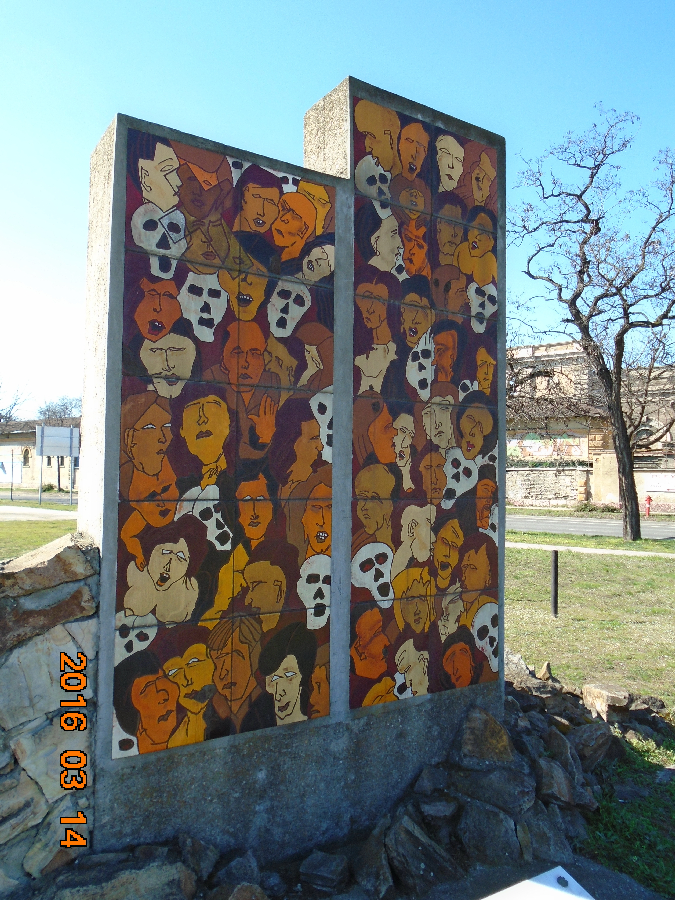 Most már elárulom, hogy a II. világháború alatt a szövetségesek bombatámadásaiban elhunyt honfitársaink emlékére emelt emlékműnél járok. Természetesen itt is van geoláda, ami azért jó, mert különben sosem hallottam volna erről az emlékműről, eljutni ide pedig eszembe sem jutott volna. Megkerülöm a kőtömböt és kissé megrettenek. Nekem Picasso képi világát idézi a műalkotás, azt pedig nem kedvelem.