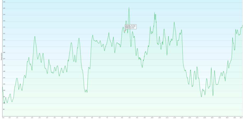 Átlagsebesség: 4,0 km/h (mozgásban 4,5 km/h)