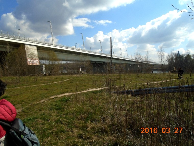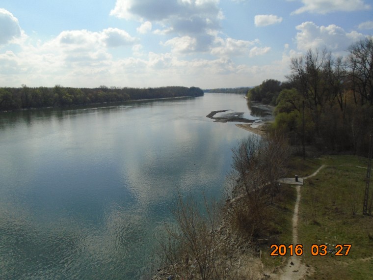 Vé, mint a kisgyerek rohan a vízhez, amit imád. Szerencsére a Pünködfürdői gáton vezet utunk tovább, így onnan remek rálátás nyílik a Dunára. Egy ismertető tábláról megtudjuk, hogy immár Budakalászon járunk. A Barát-patak torkolata után, előttünk magasodik a Megyeri-híd tömbje, erre kellene valahogyan feljutni!