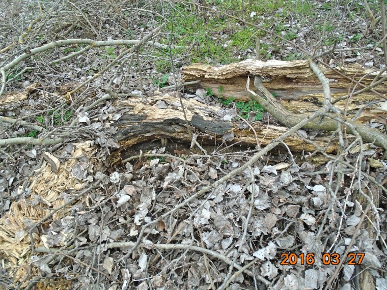 Még egy búcsúpillantás a korábban megtett útra és lemegyünk a hídról. Újra átkelünk a híd alatt és ott vagyunk, ahonnan pontosan egy hónapja elindultunk erre a hatalmas útra. Bár, ellentétben terveinkkel, nem sikerült teljes egészében gyalog végig járni az utat, de kilométerben így sem volt hiány. Mielőtt még összegeznénk a megtett távot, el kell jutnunk a záróládáig. A már ismert útvonalon megyünk a Székesdűlő felé. Az eltelt egy hónap meglátszik a növényzeten. Az akkor még majdnem csupasz ágakat már sok helyen levél borítja és a bokrok is virágdíszbe öltöztek. Ezért szeretünk vissza-vissza térni a már meglátogatott helyekre némi idő elteltével, mert remekül látszik, ahogy a természet halad a maga útján és változik a környezet. A Székesdűlő buszmegálló közelében átmegyünk a túloldalra és a kerékpárúton haladunk még egy keveset. Majd a GPS jelzése alapján leereszkedünk az út melletti lapos részre, ahol kellemetlen meglepetés fogad, mert több fát is szanaszét trancsírozva találunk.