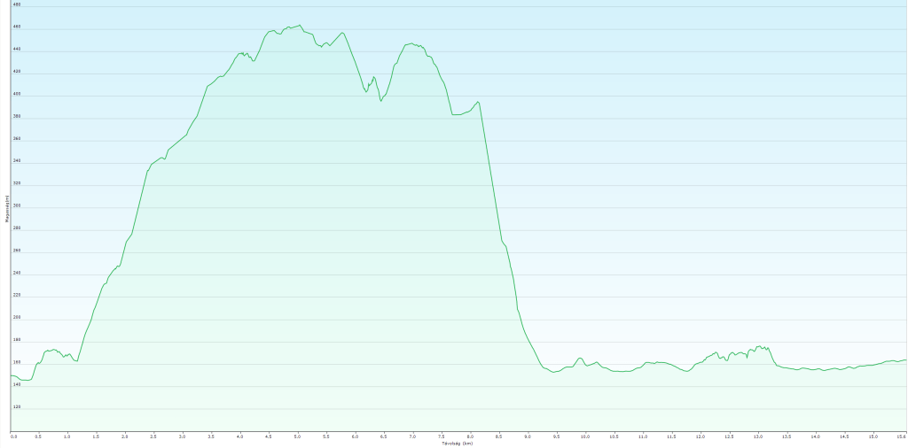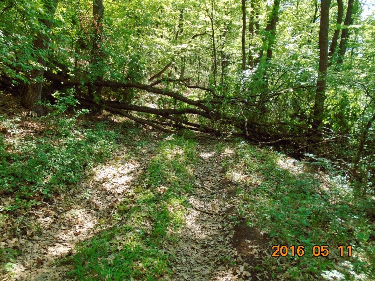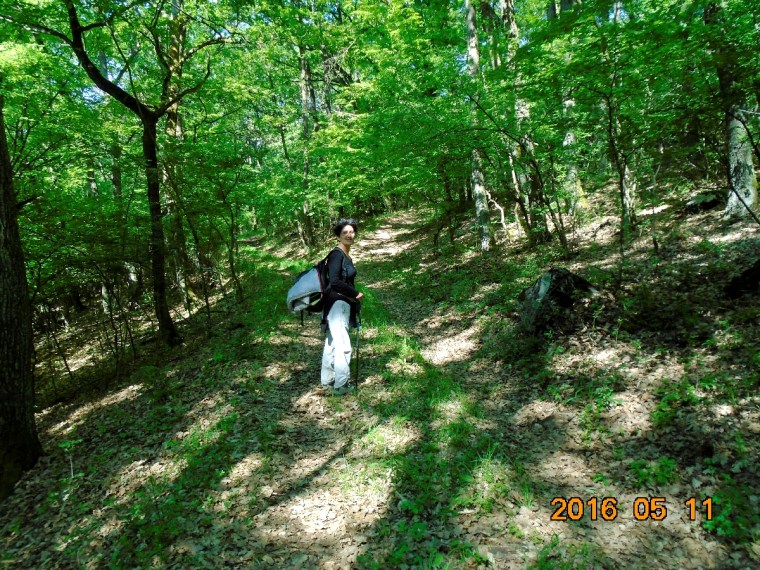 Hamarosan elérjük az erdő szélét, ahol egy darabig párhuzamosan fut az út a heggyel. Aztán egy derékszögű forduló és a turistaút merőlegesen a hegy felé veszi az irányt. Mosolyom lassanként a nem őszinte kategóriába vált, ahogy fogy a levegőm. Néha enyhül az emelkedés mértéke, de folyamatosan megmarad 10-20 % között. Néha egy kis szusszanást beiktatva, aránylag folyamatosan sikerül haladni. Ami feltűnik, az erdő tisztasága és épsége. Nincsenek a települések közelében megszokott látványt nyújtó, derékmagasságban elfűrészelt fák. Nincs eldobált szemét, PET palack, papír zsebkendő és egyéb, a turisták által otthagyott nyom, sőt még a favágók által szétdobált kenőolajos flakonok sincsenek. Egy helyen egy frissen az útra dőlt fa keresztezi utunkat. Szerencsére kerülhető.