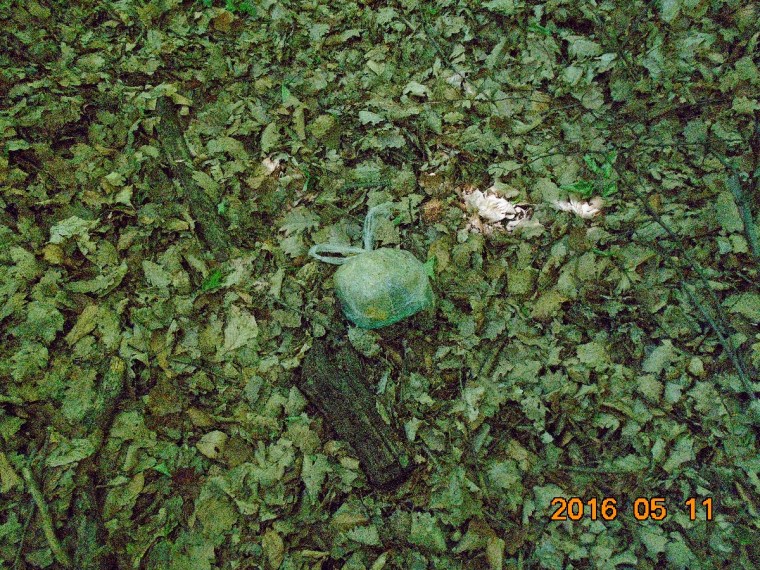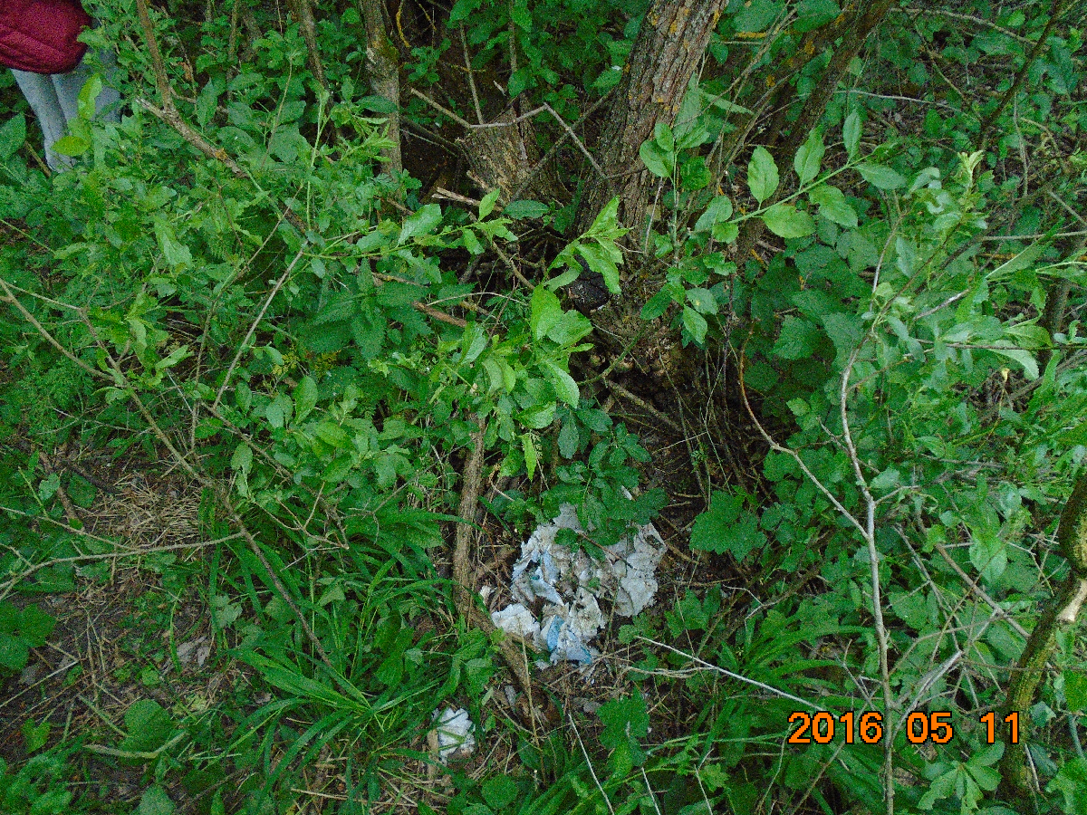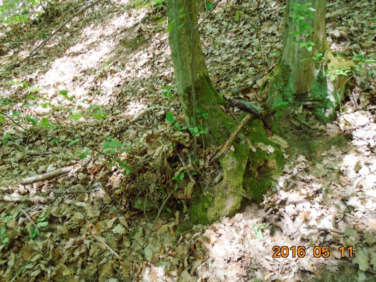 Közelében egy széthasadt tuskó, valószínűleg ebben lehetett valamikor a láda helye. Ide már nem lehet visszarejteni, ezért logolás után az árok másik oldalán álló egyik fa tövében , GPS hibahatáron belül, rejtettük újra.