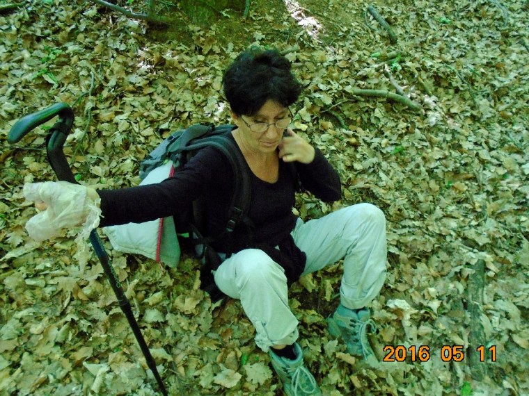 Egyik ámulatból a másikba esünk. Körülöttünk csak madárdal és az elfutó vadak okozta ágreccsenések zaja. Egy újabb, éles balforduló után aztán csodálatos részre érünk. Mély, szerintem több éves avarban járunk, ami bokán felül ér. Úgy tűnik, évek óta nem járt erre senki, olyan érintetlennek látszik a táj. A magas fák alatt egyszerre egy árny villan át. Valami ragadozómadár suhan el a lombkorona alatt, legalább 1,5 m szárnyfesztávolsággal. Olyan gyorsan történik az egész, hogy nincs idő a fényképezőgéphez nyúlni, de felismerni sem sikerül a fajtáját. Egyébként annyira sűrű a lombozat felettünk, hogy a GPS jel sokszor nem jut el a vevőnkhöz, az általunk hagyott “csiganyál”, azaz a track, meglehetősen darabos, nem követi az út kanyarulatait. A fényképezőgép is nagy zársebességgel és nagy ISO (érzékenységi) értékekkel dolgozik a kevés fény miatt, azért sikerednek szemcsés, zajos képek. Olyan, mintha a középkorban járnánk, mikor az emberi tevékenység még alig hagyott nyomot a környezeten. Lassan kisimul a táj, felérünk a kolostorhoz. Először a geoládát keressük meg, ami az úttal párhuzamos árok egyik fatönkjében kellene, hogy legyen. Ehelyett az árok közepén találjuk meg, doboz nélkül, egy szatyorba csomagolva.
