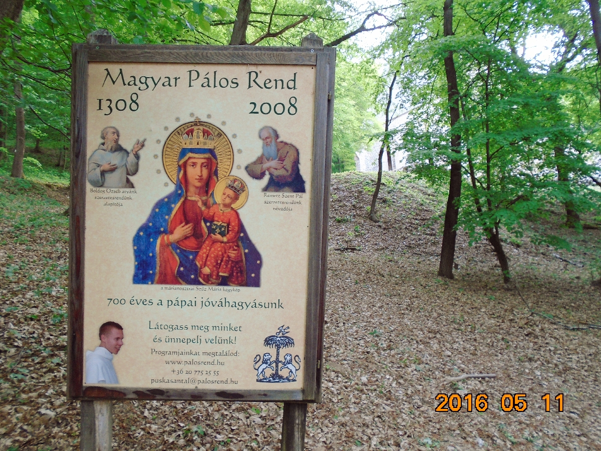 Nézelődés közben vesszük észre, hogy az eddig makulátlanul kék eget, gomolyfelhők lepik el, melyek helyenként ugyancsak fodrosodnak. Jó kis feláramlás lehet bennük! Ezekből ma még valahol zivatar lesz! – állapítom meg, felelevenítve meteorológiai ismereteimet. Közben tovább folyik a fotózás, néha egymást is fényképezzük. Kiderül, hogy a terület a pálosokhoz tartozhat, mert az ő “reklám” táblájuk áll az épület mellett.