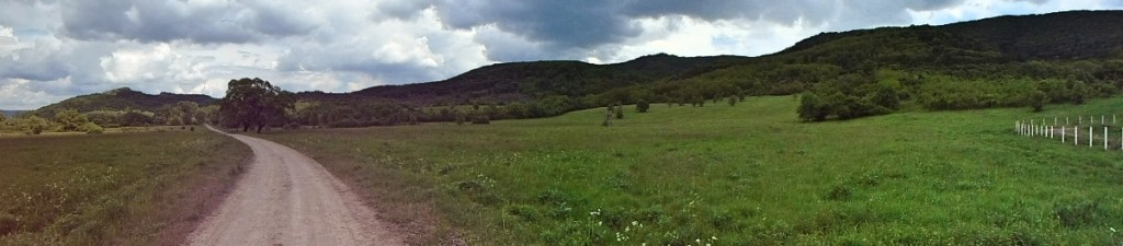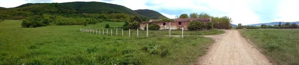 Most Vé-n van az elégedetlenkedés sora, mert a levezető út meredekebb, mint amin feljöttünk. Itt sokszor 30+ fokos lejtőn ereszkedünk lefelé. Ráadásul szedni is kell a lábunkat, mert felettünk egyre jobban beborul az ég (pedig nem is énekeltem), menedék pedig nincs a közelben. Aztán egyszerre kisimul a táj, leértünk a Bódvarákó közeli cserjésbe majd egy rétre. Egy elhagyott állattartó telepen vágunk keresztül, majd ráfordulunk a faluba vezető földútra.