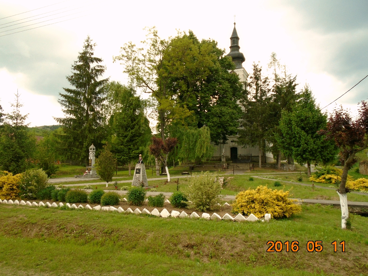Na, meg az egyre csúnyább fellegek. Már szinte biztos, hogy ma megázunk, csak az a kérdés, hogy mikor. Régi, de részben-egészben felújított, tornácos házak mellett visz az utunk, ahogy a faluba érünk. A templom előtt kis park áll, benne emlékhelyekkel.