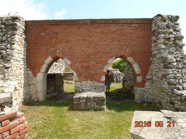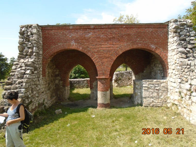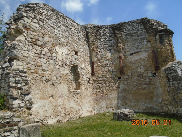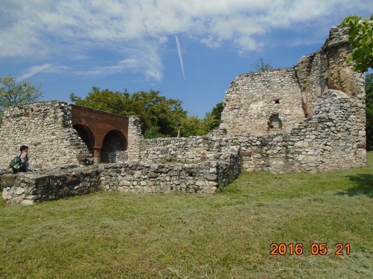 A romon rögtön szemet szúr az a nem hivalkodó kiegészítés, ahogy egyszerű, téglából készült elemekkel jelzik a hajdani boltívet és falat, könnyebbé téve annak elképzelését, hogy hogyan is nézhetett ki a hajdani templom. Sajnos manapság ritka az ilyen, az eredetivel harmonizáló felújítás! Mostanában a feltűnően eltérő, általában vakítóan fehér színű falazóelemek segítségével jelzik a kiegészítéseket, ami számunkra legalábbis, nagyon zavaró. Bejárjuk a rom területét, majd a környezet megtekintése következik. A régi síremlékek között padok helyezkednek el, felüdülést nyújtva a szemlélődő turistának. Szemlélődni pedig érdemes, mert innen már rálátás nyílik a Balatonra.