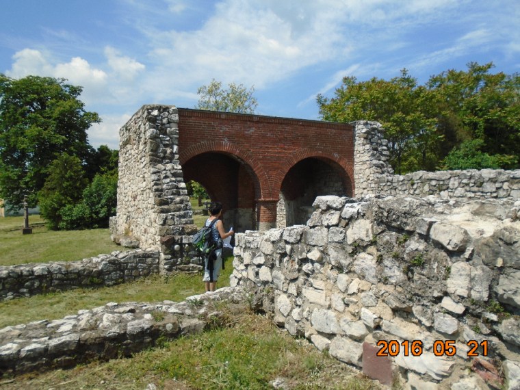 A mai napra felkészülve olvastam, hogy Balatonfüred területén egykor 7 település helyezkedett el. Ezek közül Arácson már jártunk, ma Füred és Papsoka van soron. A vasútállomásról indulva, átvágunk a Belvároson és a település nyugati széle felé vesszük az irányt. Erre található az Ófalu nevű városrész és ennek szélén Papsoka, ahol a mai első geoládánkat fogjuk megkeresni. Papsoka jelentése pap falva, pap birtoka, amint azt a ládaoldalról megtudjuk. Itt laktak ugyanis a tihanyi bencések és az apátság szolgái. A településnek volt saját temploma is Szent Mihály tiszteletére, mely egy római kori villa falmaradványaira épült, feltehetőleg a XII. században. Mára csak a romjai maradtak, de ezek igen szép természeti környezetben találhatók. Legelőször a ládát keressük meg, mely a romtól kissé távolabb, egy partoldalban, többtörzsű fa ölelésében található meg. Kissé nehéz állva maradni a meredek terepen, de a logoláshoz feljebb húzódunk, ahol már simább a terület. A logbookban keresni kell az üres helyet, ahol el tudjuk helyezni a bélyegző lenyomatunkat, mert a logbook rövidesen betelik. Ezt majd a logunk otthoni kiegészítésekor jelezni fogjuk a ládagazdának. Sikerrel járunk, a bélyegzés tökéletes. Visszarejtjük a ládát és megindulunk a rom felé. Kissé emelkedő úton érünk az egykori temető területére, melynek szélén a hajdani templom romjai találhatók.