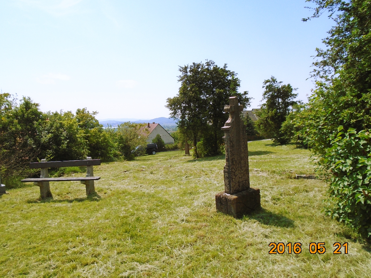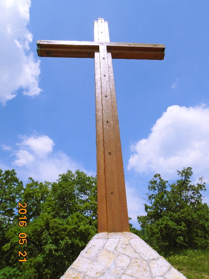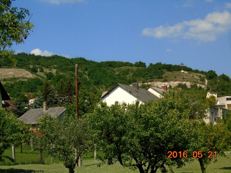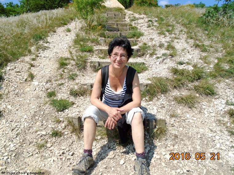 Lefelé, szokásunktól eltérően, több helyen megpihenünk az árnyékos padokon és a kereszt alatt is. Vé boldogan mosolyog, hogy MI győzedelmeskedtünk a meleg és a terep nehézségein.