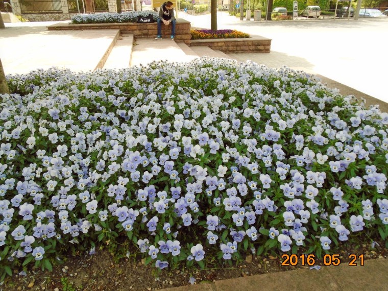 Az épülethez érve, a gyönyörű, petúniákból álló virágoskertek látványa fogja meg a tekintetünket.