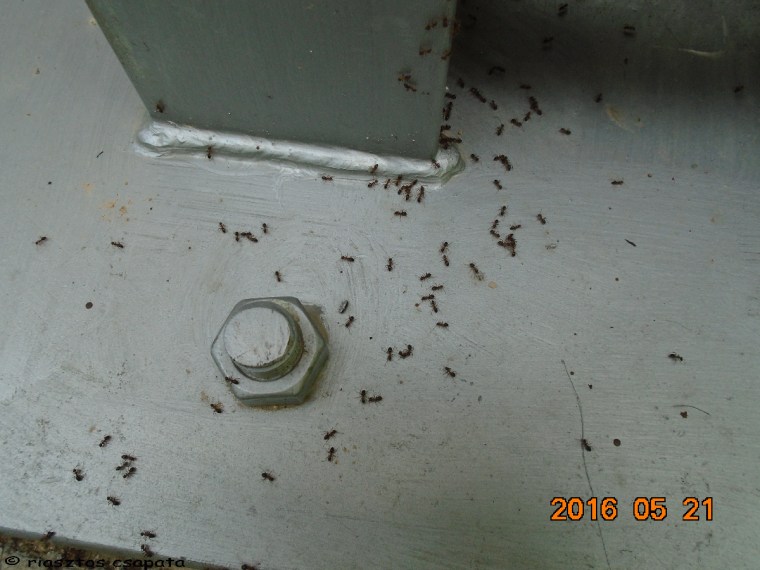 Végül minden emelkedőnek vége szakad és ott magaslik előttünk a Jókai-kilátó. A kilátóhoz egyszerre érünk egy gyerek haddal, akik szemből érkeznek és azonnal ostrom alá veszik a kilátót. Ezért úgy döntünk, hogy a jelszórészletet keressük meg a kilátó lábazatán. Legelőször is egy csomó hagymát, izé hangyát találunk (mondom, hogy nagyon meleg van, kezd az agyamra menni), akik valami kiöntött cukros folyadék eltakarításán fáradoznak. Nagyon szorgalmasok, úgy látszik nekik nincs melegük.