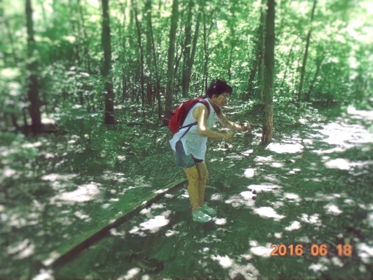 A következő állomásig futni kellene, de fusson, akit kergetnek! A következő képen Vé-nek nem szorulása van, hanem a Távolugrás helyből gyakorlathoz készülődik. Itt már olyan sűrű az erdő, hogy gyengék a fényviszonyok, kissé szemcsés képek születnek.