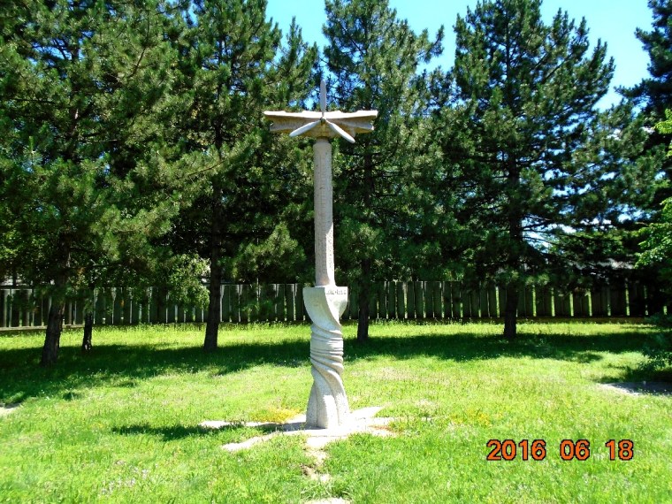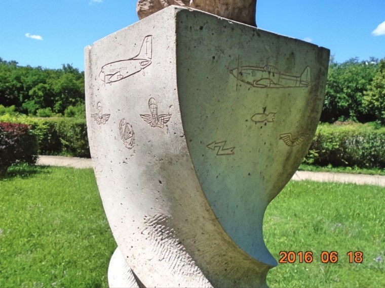 Kis pihenés után indulunk a következő ládához. Ismét az unalmas utcákon ballagunk és ismét beszélgetünk. Megállapítjuk, hogy meglepően jó állapotban van ez a tornapálya, legalábbis a szolnokihoz képest. Biztos nem tesitanárból lett a polgármester! Idővel visszaérünk a kiinduló vasúti megállóhelyhez és most a másik irányba indulunk el. Szerencsére nincs messze a következő virtuális láda, mely az egykori Sóstói repülőtérnek és az ott szolgálatot teljesítő repülőknek és ejtőernyősöknek állít emléket.