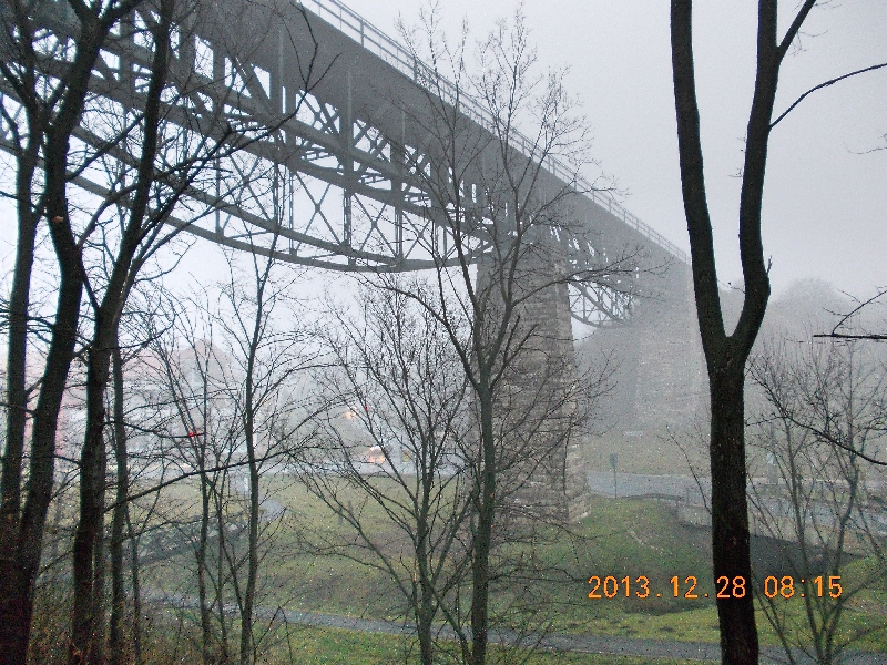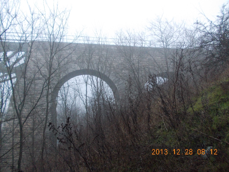 Mivel úgy tervezzük, hogy a Geokarácsony ládán kívül még megkeresünk néhány másikat, így Biatorbágy vá-t választjuk túránk kiinduló pontjának. A vonatról leszállva, sűrű köd fogad bennünket. A GPS is alig lát az antennájánál tovább. Ha nyár lenne, ebben az anticiklonban, ami most uralkodik, hétágra sütne a nap. De tél van. Szerencsére első célpontunk a településen található, így nem okoz nagy gondot a csekély látótávolság. Biatorbágy fő utcáján ballagunk az egykori híres-hírhedt viadukthoz, melyet hajdanán Matuska Szilveszter dinamittal és a bécsi gyorssal repített a levegőbe, 22 ember halálát okozva ezzel. Valószínű az öregnek ez volt a hobbija, mert két korábbi, egy németországi és egy ausztriai robbantást is a számlájára írtak. Hülye elfoglaltság az biztos, inkább kirándult volna! Most ne menjünk bele, hogy a történelmünkben hová is vezetett ez az esemény! A viaduktot később újjáépítették, majd az 1-es vasútvonal felújítása során, mikor nagyobb sebességű közlekedésre is alkalmassá tették, a nyomvonalat áthelyezték. A viadukt azóta műemlékként emlékeztet a múlt eseményeire. Míg ezen töprengünk, a ködből, mint egy thrillerben, hirtelen előttünk terem a viadukt. Olyan hirtelen magaslott fel előttünk, hogy az már-már kísértetiesnek tűnt. Egyik pillanatban csak a tejfel-szerű köd, a másik pillanatban ott áll előtted. A két viadukt között egy lépcső vezet felfelé, ezen indulunk meg. A ládát az egyik pillér lábánál megtaláljuk.