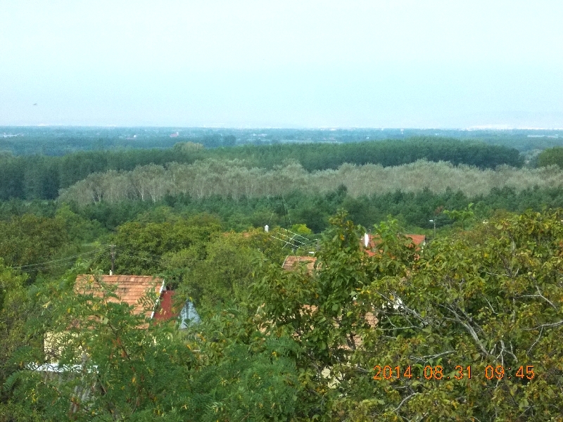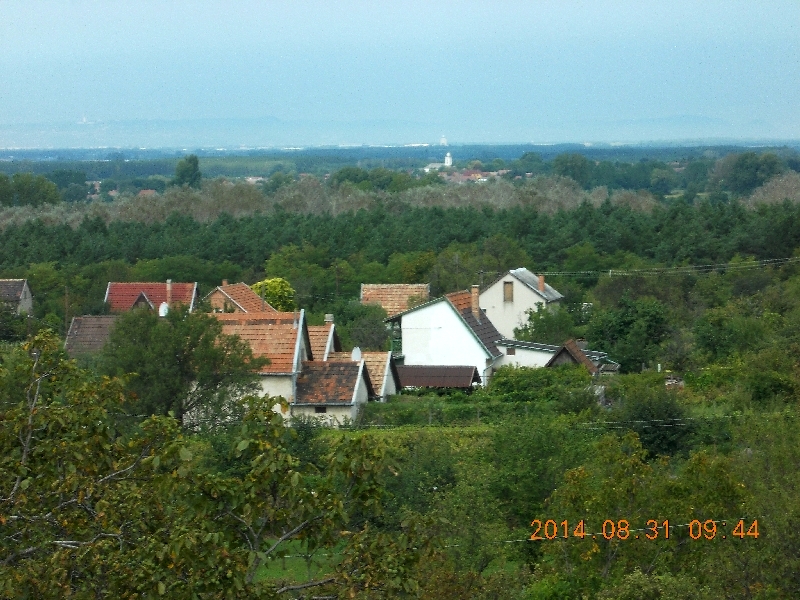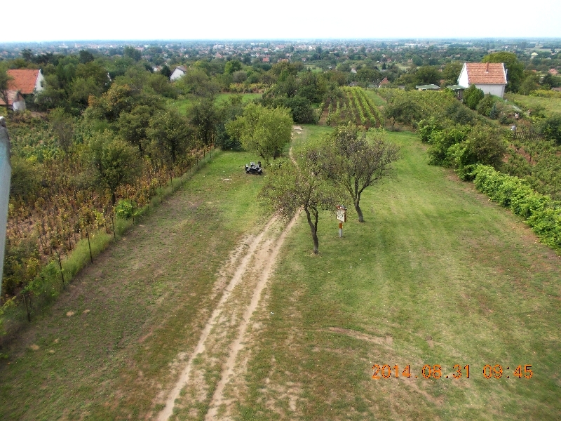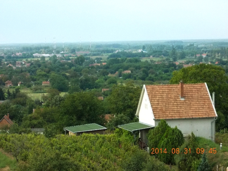 jelzést kell követnünk, mely egyenesen a “hegyen” álló kilátóig visz. A városon különösebb látnivaló nélkül haladunk keresztül, hiszen Monor is csak olyan kisváros, mint amilyenből számtalan van az országban. “Elővárosának”, Monorierdőnek a lakosságával együtt is csak kb. 20 ezres a létszáma. Viszont járási székhely és a budapesti előváros vonatindító állomása is. A lakosság nagy része naponta a fővárosba jár dolgozni. De térjünk vissza túránkhoz! A házak közül kiérve, a szőlőskertek veszik át a főszerepet. Az út is lassanként emelkedni kezd, jelezve, hogy mégiscsak hegynek megyünk. Jellemzően bekerített, egyéni birtokokat látunk, szemben a borvidékek nagy táblás művelésével. Már jócskán a telkek között járunk, mikor eszünkbe jut, hogy természetjáró mentorom és barátom Osi, a lelkünkre kötötte, hogy a város szélén álló borozóba feltétlenül térjünk be, megkóstolni a hegy levét. Erről lemaradtunk, vissza már nem fordulunk. Egyébként is mi csak túra után szoktunk egy-egy pohárral felhajtani valami itókát, úgymond “jutalom a nap végén” jelleggel. Megyünk az úton és nézegetjük a kerteket. Van amelyik gyönyörűen ápolt, hatalmas fürtök lógnak a tőkékről, mások elhanyagoltak, gazosak. Látszik, hogy évek óta nem voltak metszve sem, csenevészek a bogyók is a fürtökben. Gondolom “örülnek” a szomszédok, mert ilyen telkekről, a monília is könnyen átterjed a környékre. Lassanként elérünk a Szent Orbán szoborhoz, melyet a szőlők védelmében állítottak, ahogy azt szokás sokfelé az országban. Utunkat a pár évvel ezelőtt létesült szőlészeti és borászati tanösvényen folytatjuk. Olvasgatjuk a táblákat, gyarapítva ez irányú tudásunkat. Aztán, mivel nem olyan magas ez a hegy, hamar fel is érünk a tetejére felállított kétszintes kilátóhoz. Kicsit szkeptikusak vagyunk a kilátást illetően, mert a kilátót a környékről sem lehet látni, de egy próbát megér! Felérve a második szintre meglepődünk, hogy milyen messzire el lehet látni! Viszont a város felé nincs kilátás, így jól láttuk, hogy nem láttuk.