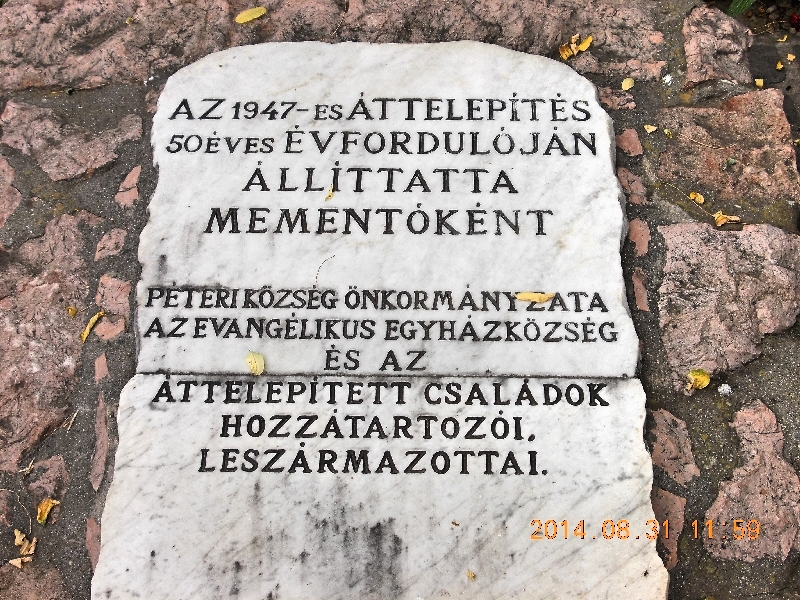 Megnézzük a templom körül az emlékműveket, majd indulunk a vonathoz. A Hosszúberekkel közös megállóhelyhez ugyanis, még egy jó 20 percet kell gyalogolni. Nem is csodálom, hogy nem sokan veszik igénybe a vasutat. Míg a megállóhely felé tartunk megbeszéljük, milyen szimpatikus településnek találtuk Péterit. Tiszta, rendezett, látszanak a lakók tót gyökerei. Az emlékművek egyike is a II. vh. utáni lakosságcserének állít emléket. A látottak miatt, ide szívesen visszatérnénk még!