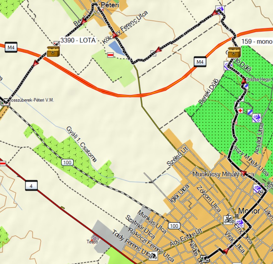 Logolás után megyünk tovább a turistaúton. Akácosok és szántóföldek között vezet az utunk. A csendet csak egy ragadozó madár kiáltása töri meg, ami a szántóföld fölött köröz. Úgy látom egerészölyv lehet, de elég messze van. Lassanként erősödő zúgás hallatszik, közeledünk a 4-es főút felé. Szerencsére egy aluljárón keresztül tudunk átkelni rajta, így nem kell a testi épségünket veszélyeztetni. Néha repülőgépek szállnak el (majdnem) fölöttünk, közel Ferihegy! Egy hosszú egyenes után aszfaltúthoz érünk és hipp-hopp, már Péteriben is vagyunk. Mindjárt a település szélén található a Lógató Horgásztó, utunk következő állomása. Mi nem a damilt lógatjuk, hanem az orrunkat, mert lóg az eső lába is. Ezért sietősre vesszük a logolást. Egy csupa hangya, öreg korhadó fa odúja rejti a ládát.