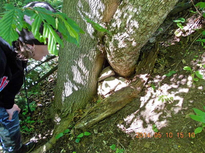 Kissé megdolgozom, mire a csúszós meredeken felkapaszkodom érte. Kibontva, szinte tocsog a víztől, mert repedt a doboz. A vizes logbookba még bélyegzővel is nehéz elhelyezni a logunkat, a toll pedig nem is fog a papírra. Azonban csak most jön a neheze! A lejtős felületen a doboz álcázására szolgáló kövek folyton legurulnak. Pár percen át küzdök vele, majd Zoli segítségével sikerül megállítani az építményt. (Szerintem ezért a tevékenységéért meg is érdemelne egy építész diplomát! )