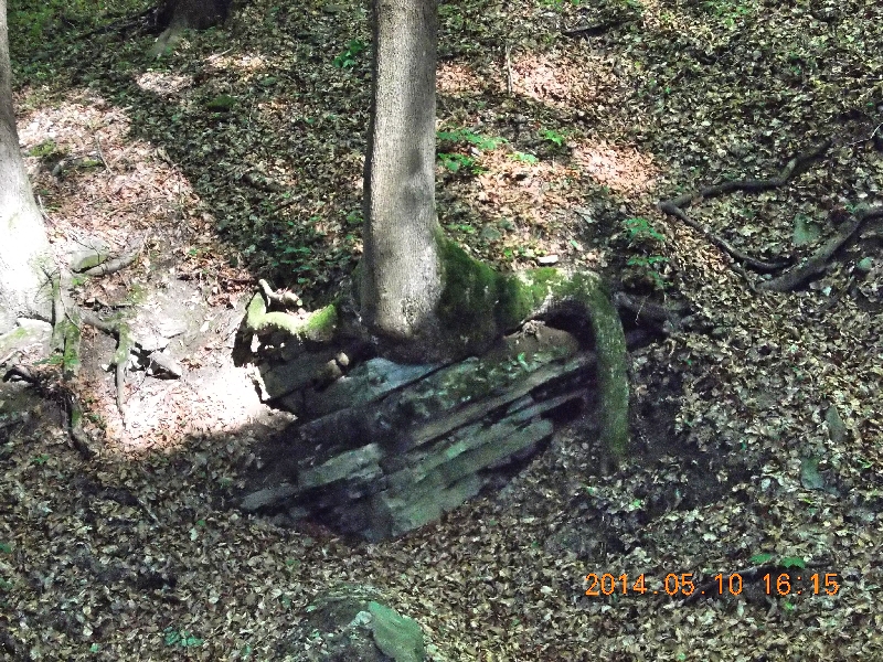 Találunk egy fát, amely a lejtőn úgy nőtt rá egy sziklára, mintha valaki kőlapokat pakolt volna alá, hogy függőlegesen álljon. Remélem a fényképen a nagy kontrasztkülönbség ellenére látszik ez az érdekesség.